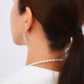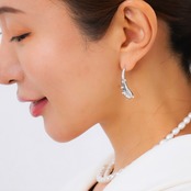 しずくのように流れるフォルムに、小さなイミテーションパールをスタッズのように散りばめたデザインピアス。