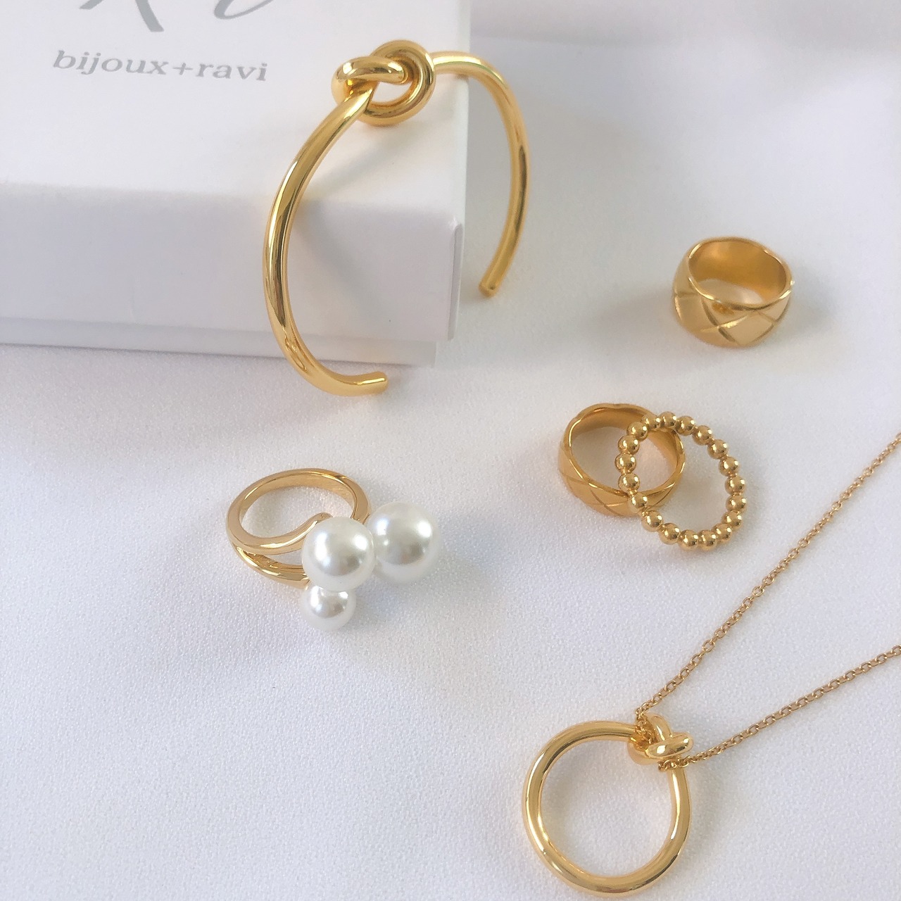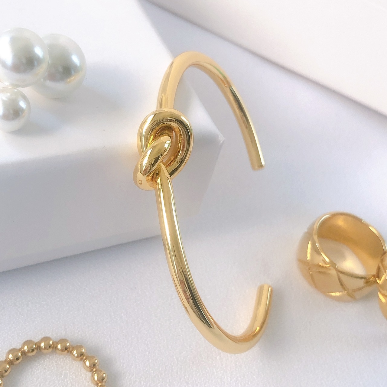 柔らかな丸線のカーブが手首に馴染むデザインはシンプルにさっと付けるだけでスタイリングのアクセントに♪