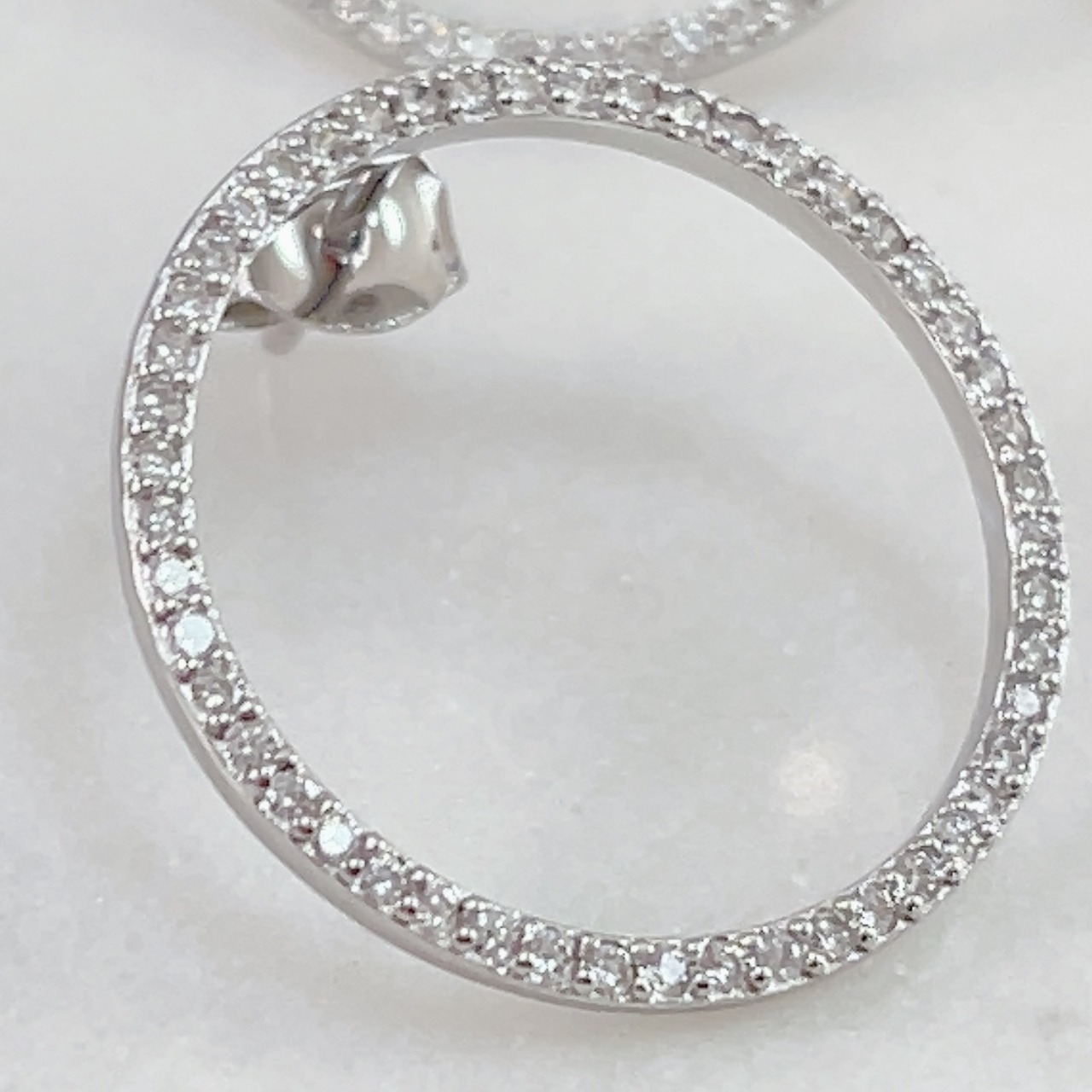 ジルコニアを丁寧にあしらったサークルデザインが、耳元で美しく輝いて女性らしい印象を与えます。