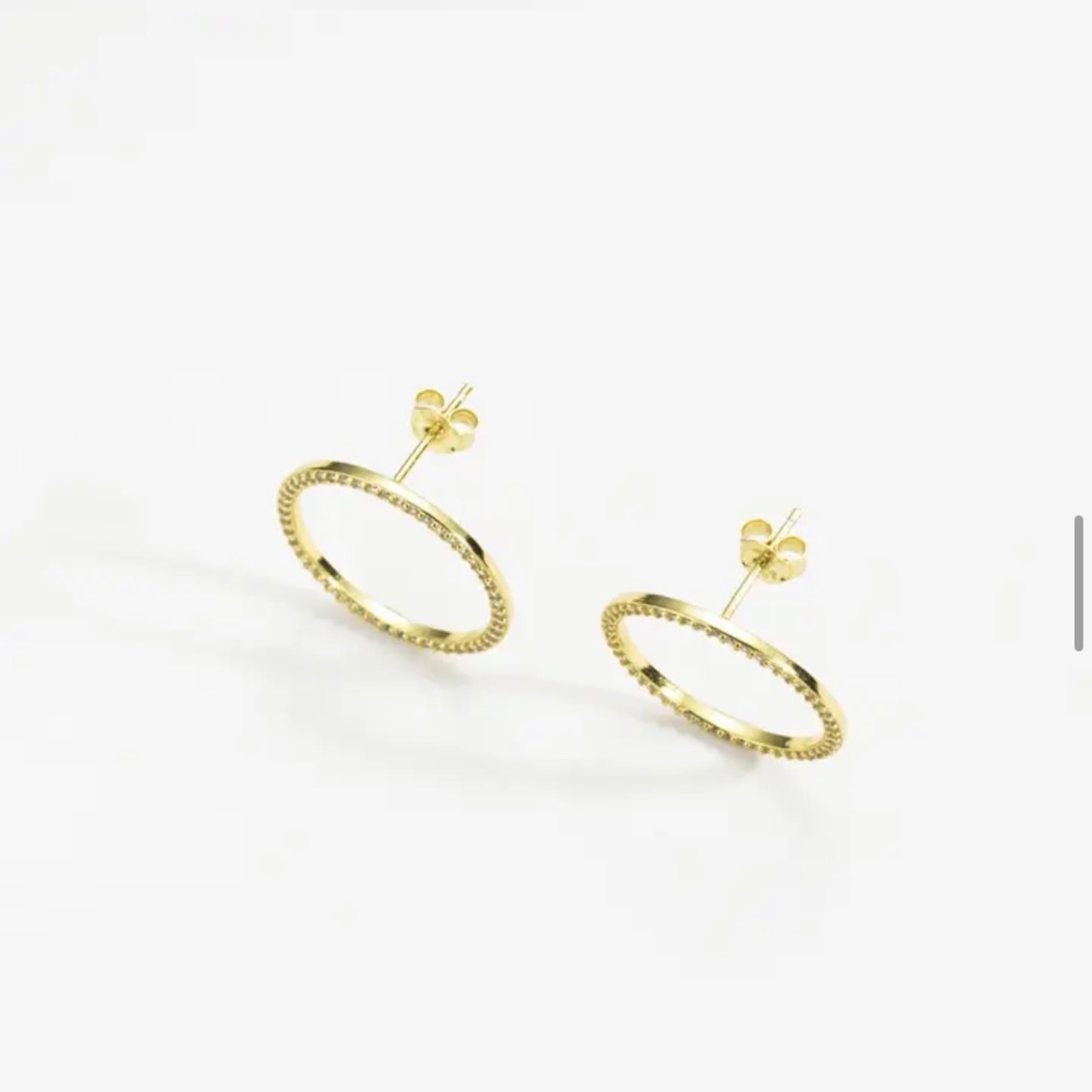 シンプルながらも上品な輝きが魅力のサークルビジューピアス。