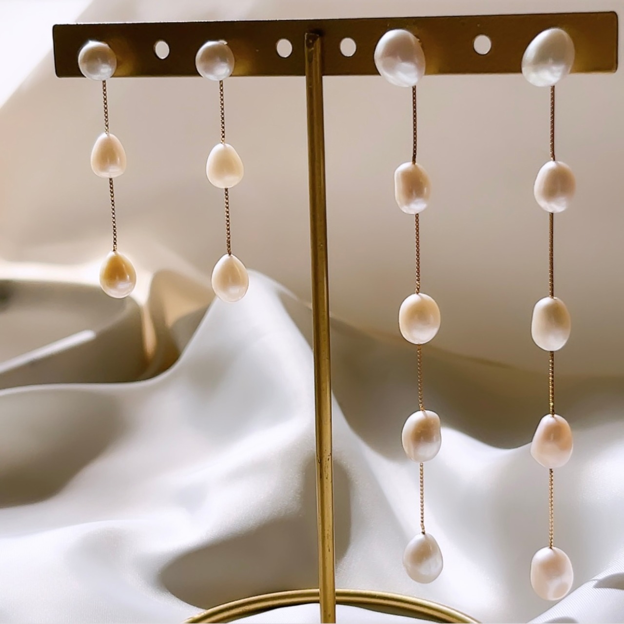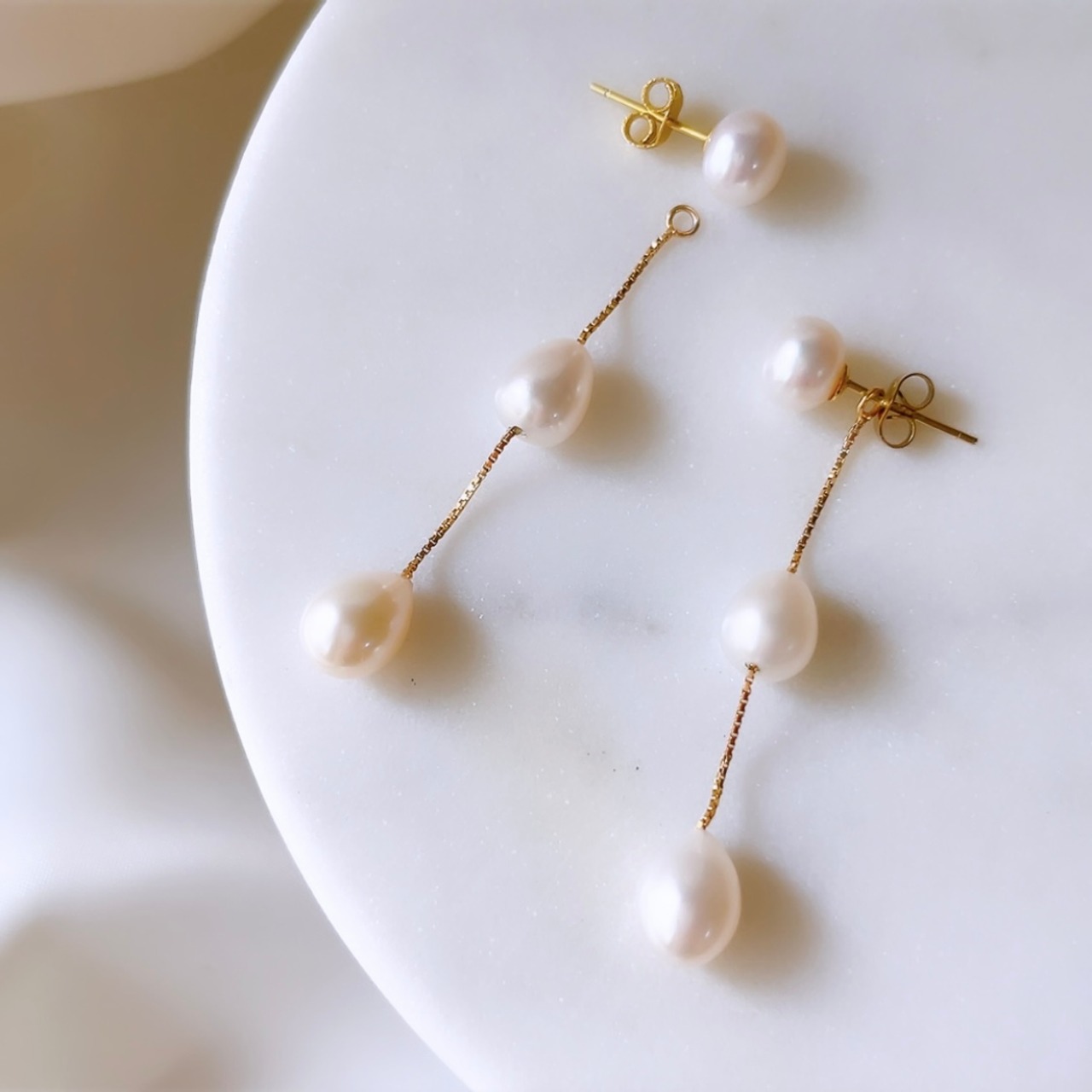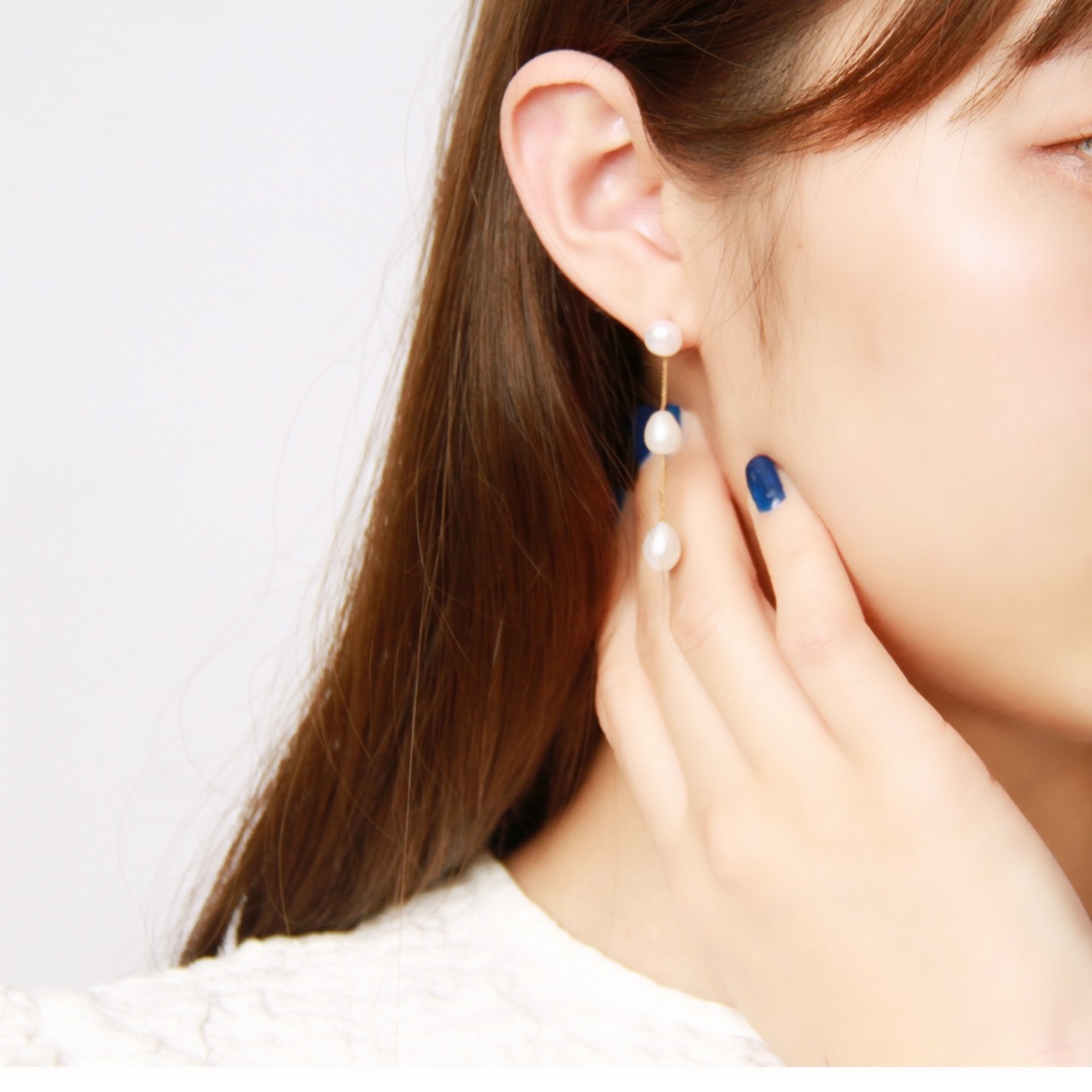 ご好評のステーションパールピアスの短めバージョンが新登場しました。