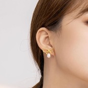 可愛い印象のリボンモチーフに、ロープデザインのリボンがスパイスを効かせたピアスです。