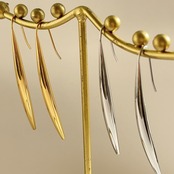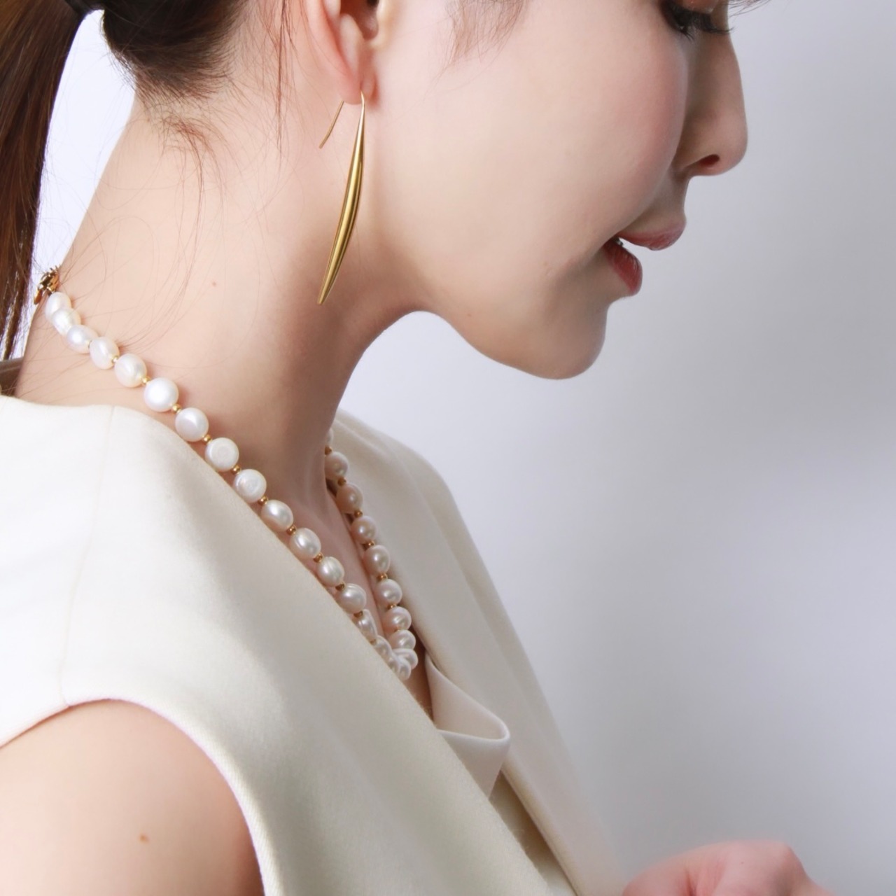 美しい曲線のロングピアスは、シンプルながらも洗練されたデザインで女性らしさを引き立てます。