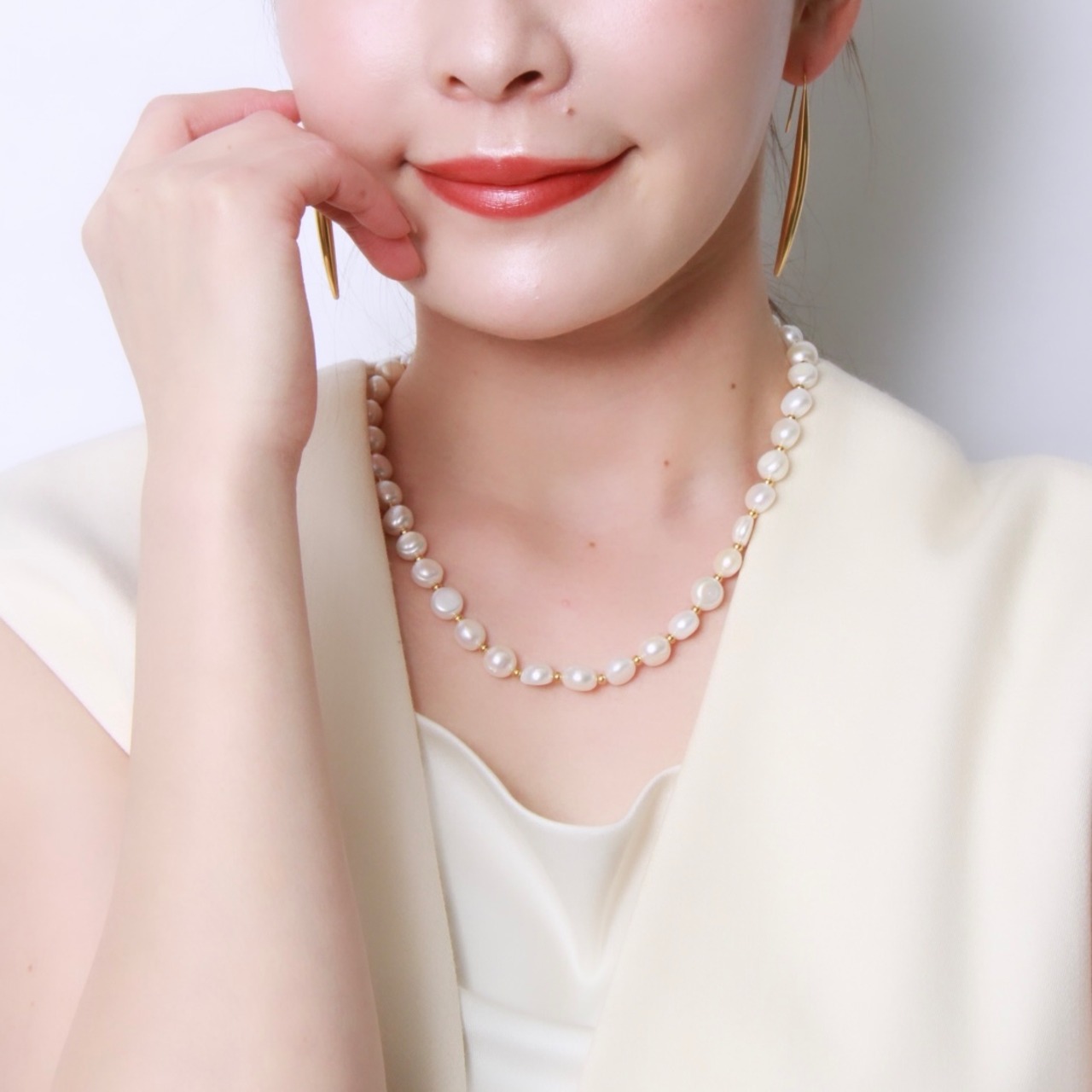 オフィスやカジュアルな日常のスタイリングにも合わせやすく、さまざまなシーンで活躍します。女性らしさとシャープさを兼ね備えた一点です。