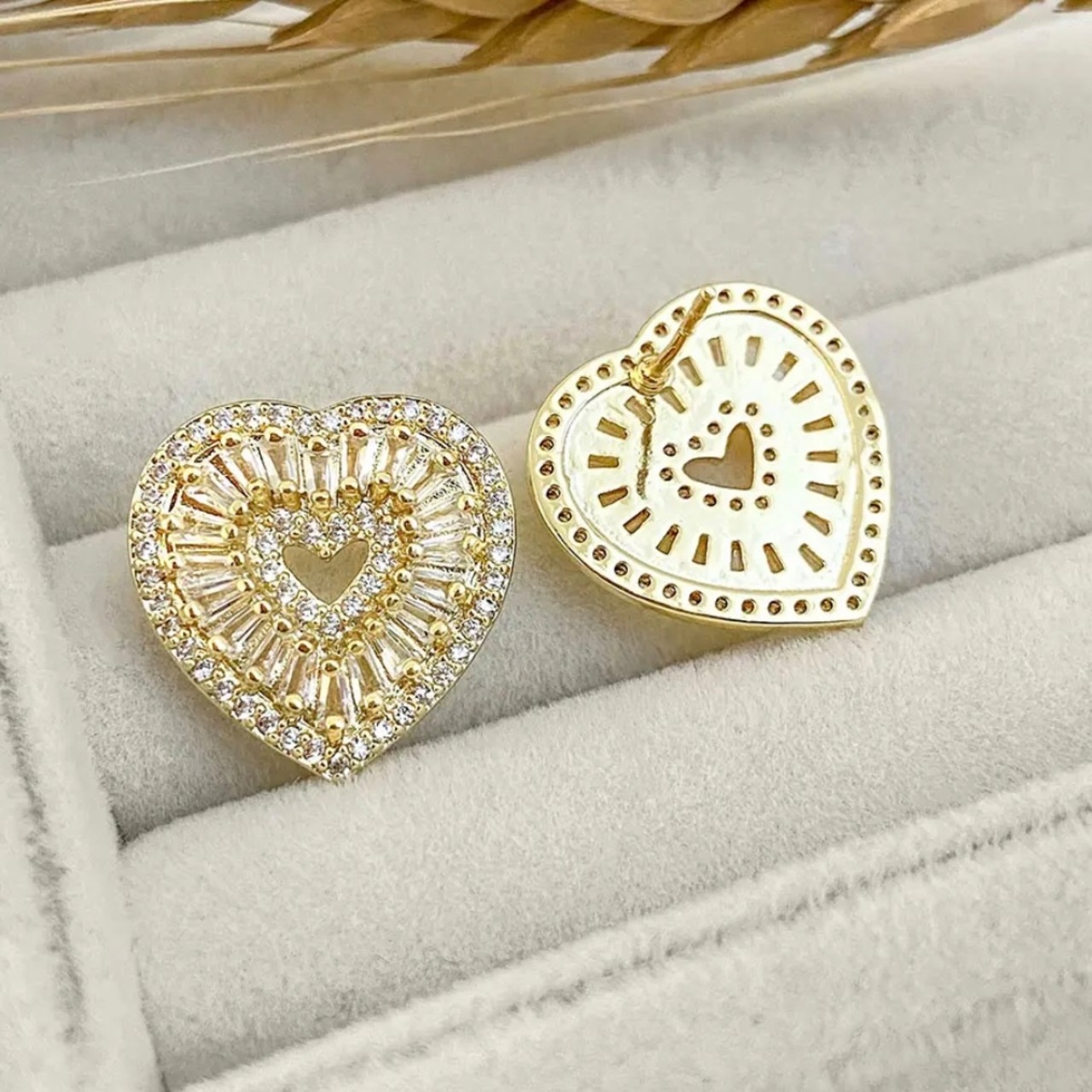 中心がくりぬかれた抜け感のあるデザインがポイントのハートビジューピアス。