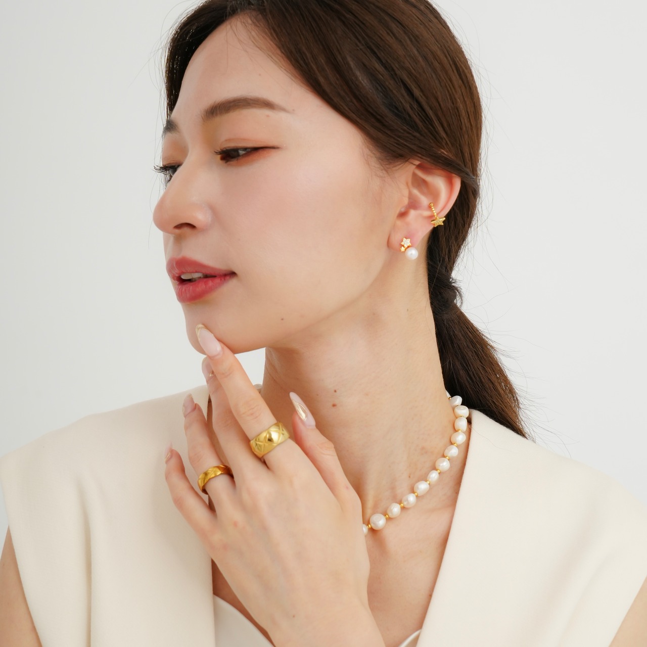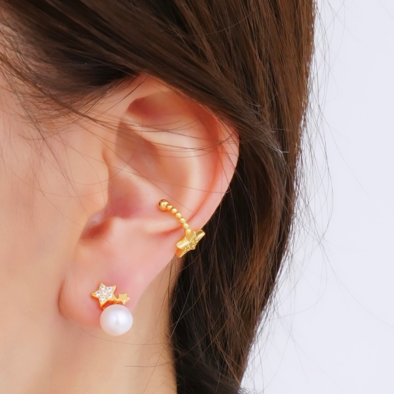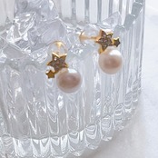 上品な淡水パールと可愛らしい星モチーフが絶妙に組み合わさった、ミニサイズのピアスです。